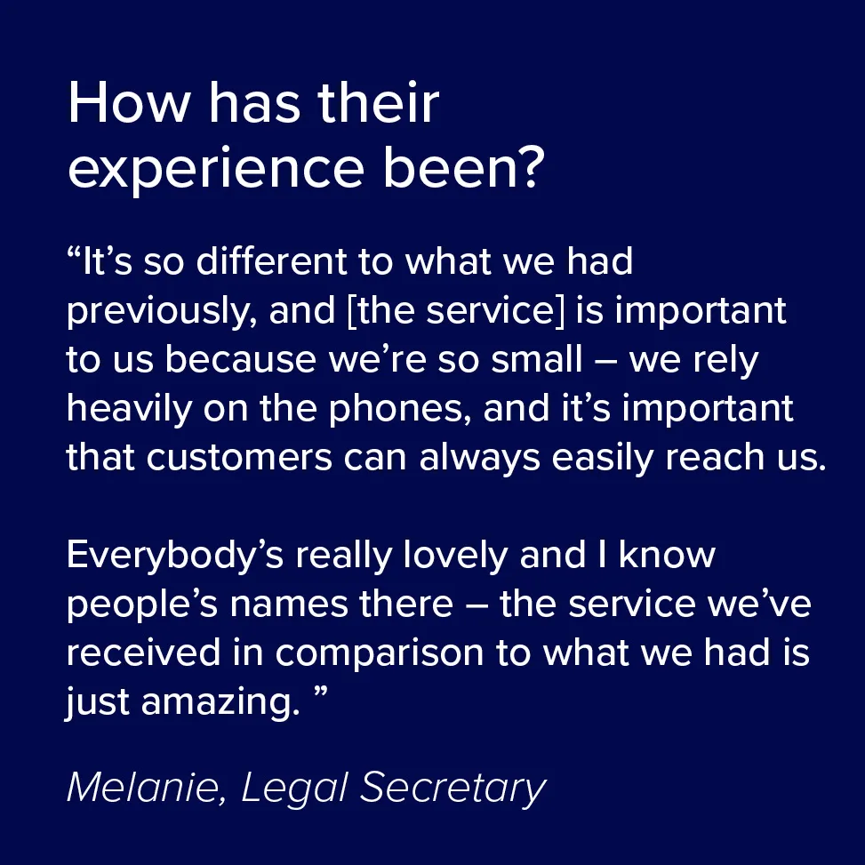 As a small professional services firm, BJCS’s business is reliant on being easily reached by phone. Unfortunately, their clear need for dependable systems had not been met in recent years. Their previous provider’s service was unreliable at best, and at worst, could be down for days at a time before being resolved. Measures that BJCS resorted to at these times include using mobiles to make calls, and having incoming calls diverted to the company’s Legal Secretary’s personal mobile.