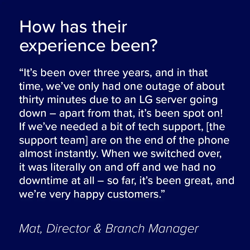 They met with a number of providers, and ended up with a couple of comparable options to choose from, however Mat felt that Wayv, as a local firm who “ticked all the boxes” were the right fit for the company.